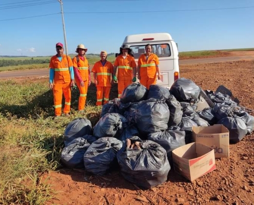 Mais de 50 sacos de lixo foram retirados da área dos ciclistas próximo ao aterro sanitário em Bandeirantes