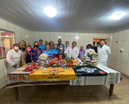Alimentos doados por ciclistas na Efapi são entregues em Itambaracá