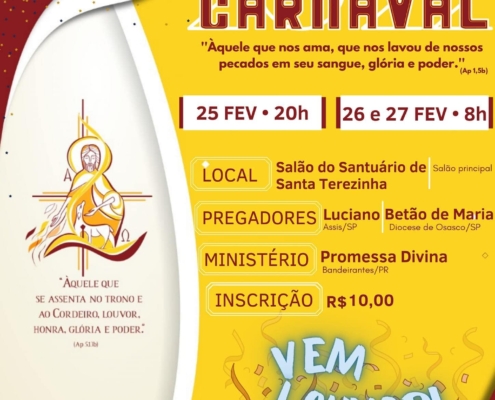 Nestes dias 25,26 ne 27 de fevereiro, tem Retiro Espiritual de Carnaval em Bandeirantes
