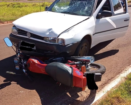 Colisão carro x moto no Eurípedes Rodrigues em Bandeirantes deixa casal ferido