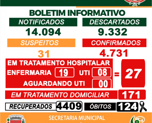 Boletim de acompanhamento diário desta segunda-feira, 28/06, dos casos de Coronavírus – Covid-19, em Bandeirantes