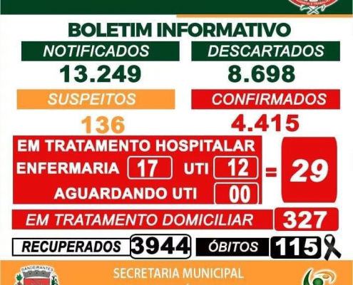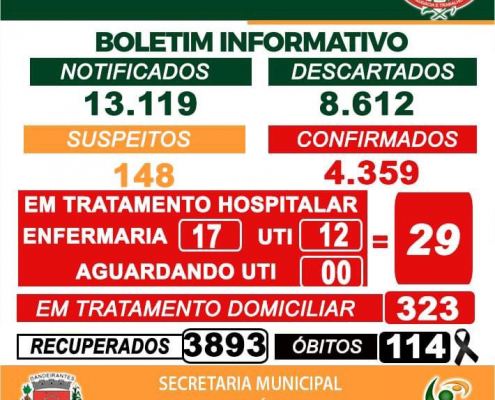 Boletim de acompanhamento diário desta Quinta-feira, 10/06, de vacinação e dos casos de Coronavírus – Covid-19, em Bandeirantes