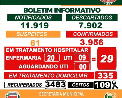 Boletim de acompanhamento diário desta Quarta-feira, 02/06, dos casos de Coronavírus – Covid-19, e vacinação em Bandeirantes