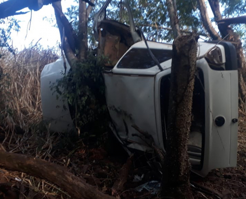 Jovens ficam ferido após capotar carro na estrada da Yara em Bandeirantes