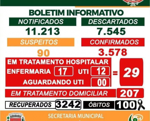 Boletim de acompanhamento diário desta sexta-feira, 21/05, dos casos de Coronavírus – Covid-19, em Bandeirantes
