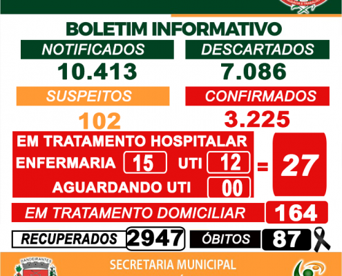 Boletim de acompanhamento diário desta Quinta-feira, 06/05, dos casos de Coronavírus – Covid-19, em Bandeirantes
