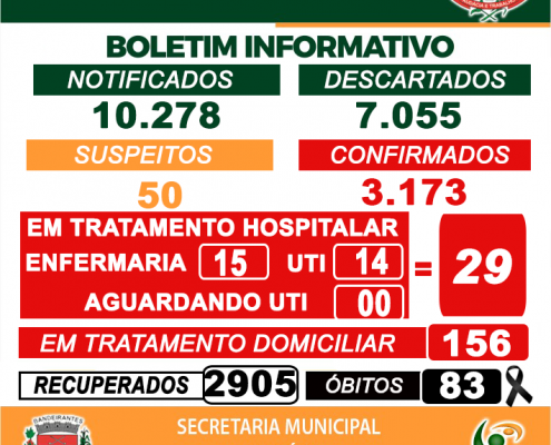 Boletim de acompanhamento diário, Quarta-feira, 05/05, dos casos de Coronavírus – Covid-19, em Bandeirantes