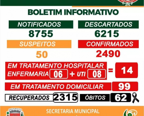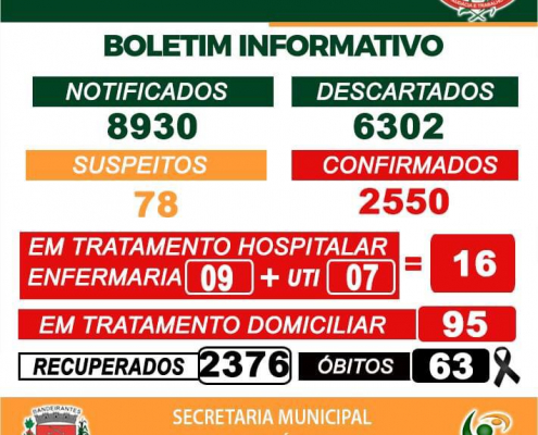 Boletim de acompanhamento diário desta terça-feira, 06/04, dos casos de Coronavírus – Covid-19 em Bandeirantes