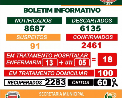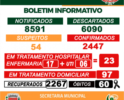 Boletim de acompanhamento diário quarta-feira, 01/04, dos casos de Coronavírus – Covid-19 em Bandeirantes