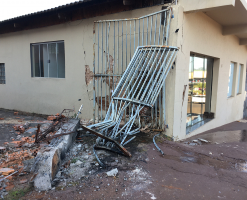 Máquina niveladora perde o controle e bate em ponto comercial em Bandeirantes