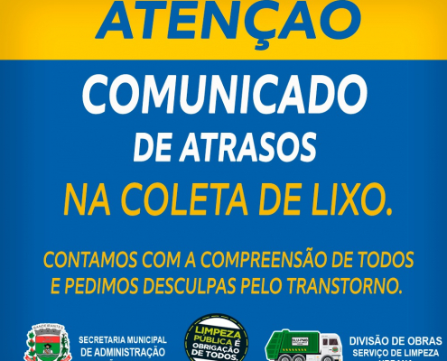 Serviço de Limpeza Urbana comunica que haverá atrasos na coleta do lixo nesta Terça-Feira, 16/03