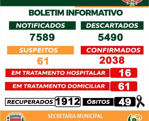 Boletim de acompanhamento diário desta segunda-feira, 08/03, dos casos de Coronavírus – Covid-19 em Bandeirantes