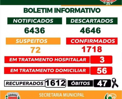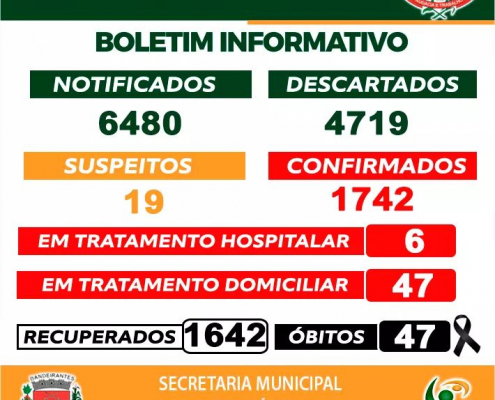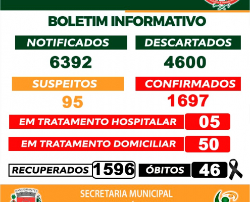 Boletim de acompanhamento diário desta segunda-feira, 01/02, de casos de Coronavírus – Covid-19 em Bandeirantes