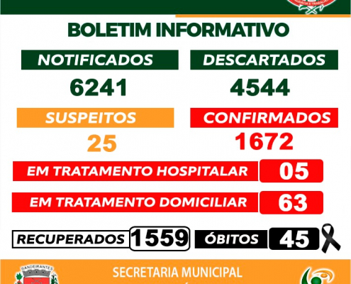 Boletim de acompanhamento diário desta segunda-feira, 25/01, de casos de Coronavírus – Covid-19 em Bandeirantes
