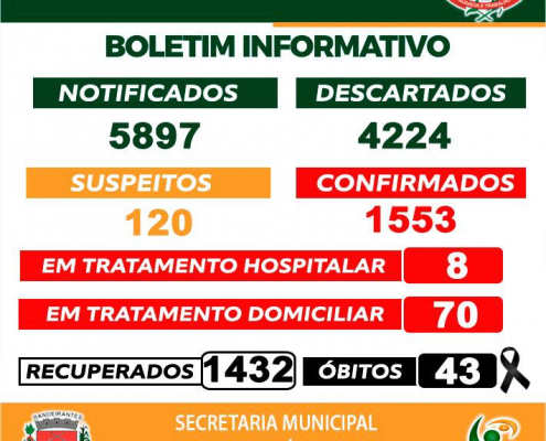 Boletim de acompanhamento diário desta terça-feira, 19/01, de casos de Coronavírus – Covid-19 em Bandeirantes