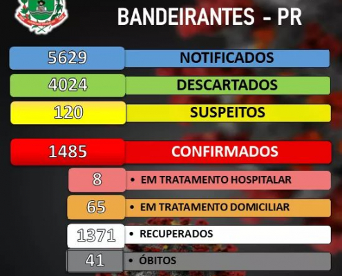 Boletim de acompanhamento de casos de Coronavírus em Bandeirantes desta quarta-feira, 13/01