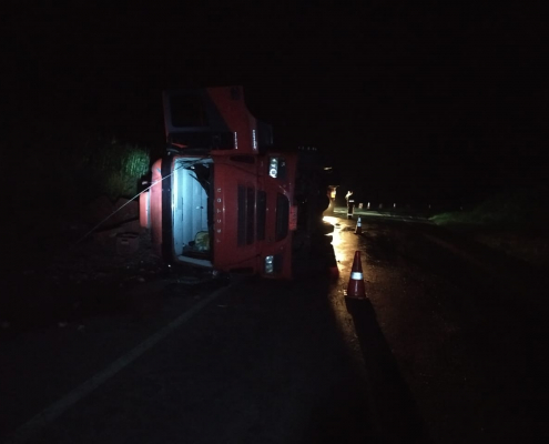Caminhão tomba em curva próximo ao Patrimônio Nossa Senhora Aparecida em Andirá