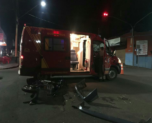 Colisão auto x moto no centro de Bandeirantes na noite de sábado