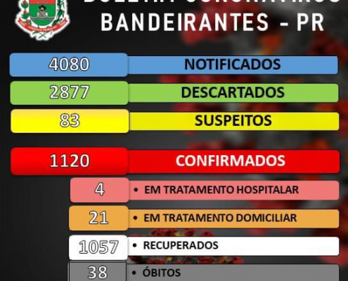 Boletim de acompanhamento de casos de Coronavírus em Bandeirantes desta quinta-feira, 19/11