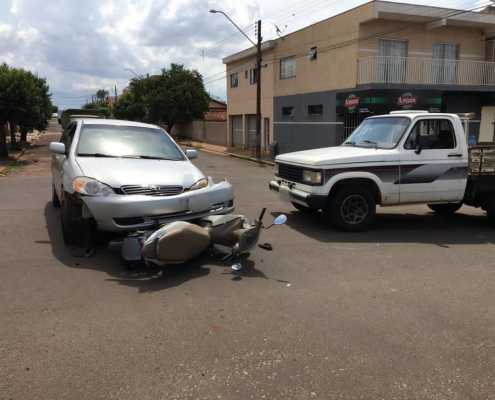 Colisão auto x moto no centro de Bandeirantes deixa mulher ferida