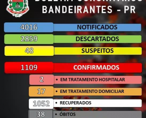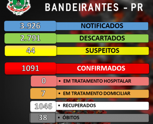 Boletim de acompanhamento de casos de Coronavírus em Bandeirantes desta quinta-feira, 12/11