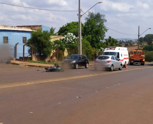Colisão auto x moto na noite de sexta-feira no Celso Fontes em Bandeirantes