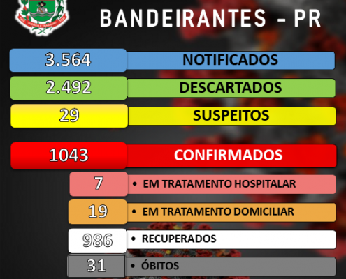 Boletim de acompanhamento de casos de Coronavírus em Bandeirantes desta quarta-feira, 21/10