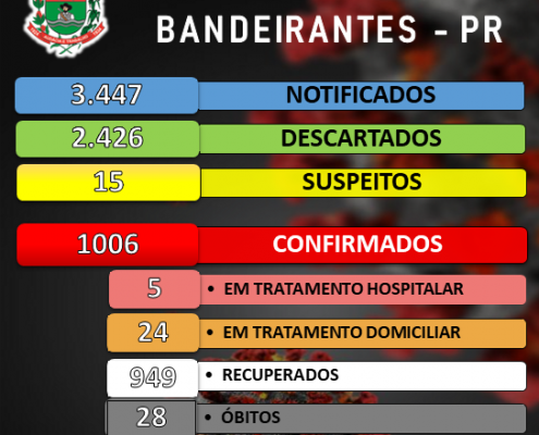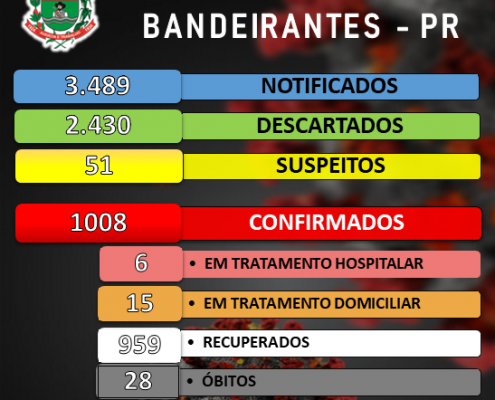 Boletim de acompanhamento de casos de Coronavírus em Bandeirantes desta sexta-feira, 16/10