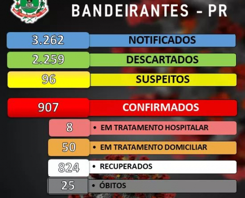Boletim de acompanhamento de casos de Coronavírus em Bandeirantes desta quarta-feira, 30/09