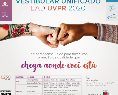 Vestibular Unificado EaD 2020, com os cursos de graduação de nível superior gratuitos Administração Pública de Tecnologia em Administração Pública
