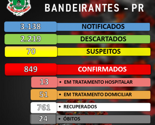 Boletim de acompanhamento de casos de Coronavírus em Bandeirantes desta quinta-feira, 24/09