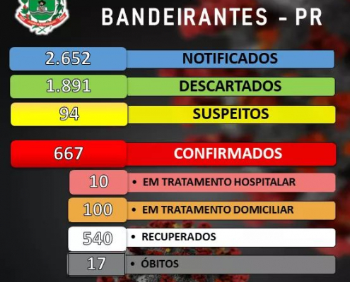 Boletim diário de acompanhamento de casos de Coronavírus em Bandeirantes desta quinta-feira, 17/09