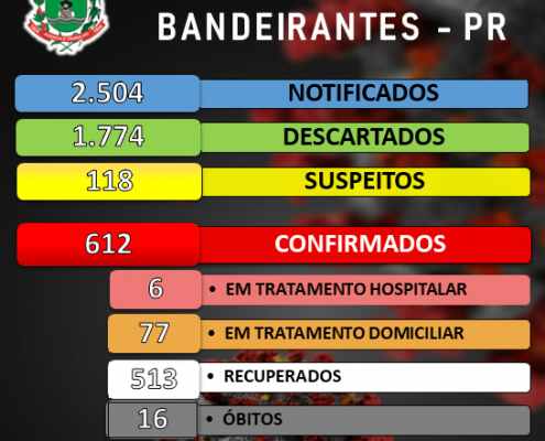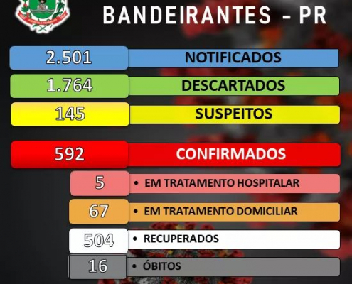 Boletim diário de acompanhamento de casos de Coronavírus em Bandeirantes desta quinta-feira,10/09