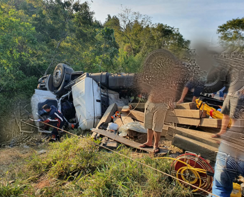 Após tombamento de carreta esposa e filho de caminhoneiro morre entre Ibaiti e Ventania