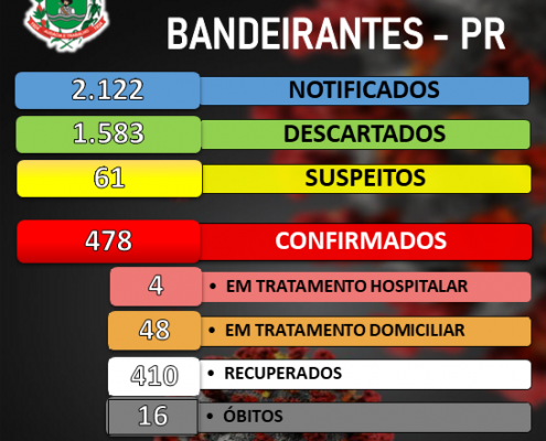 Boletim diário de acompanhamento de casos de Coronavírus em Bandeirantes desta quarta-feira, 02/09