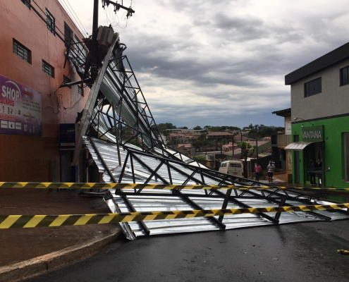Chuva de granizo e rajadas de vento de aproximadamente 75km/h, causando muitos estragos