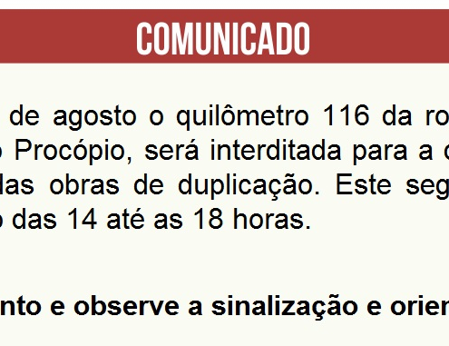 Quem for utilizar a rodovia, deve seguir as rotas alternativas: