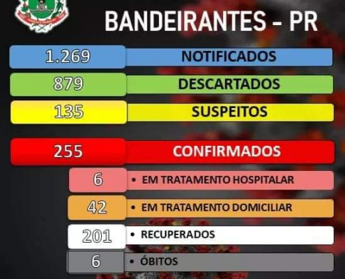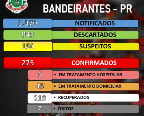 Boletim diário de acompanhamento de casos de Coronavírus em Bandeirantes desta quinta-feira, 06/08