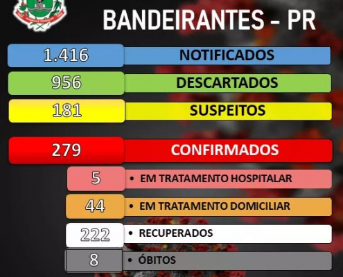 Boletim diário de acompanhamento de casos de Coronavírus em Bandeirantes desta quarta-feira, 05/08