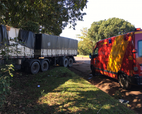 Carreta sai da pista e bate em árvore na BR 369 em Bandeirantes