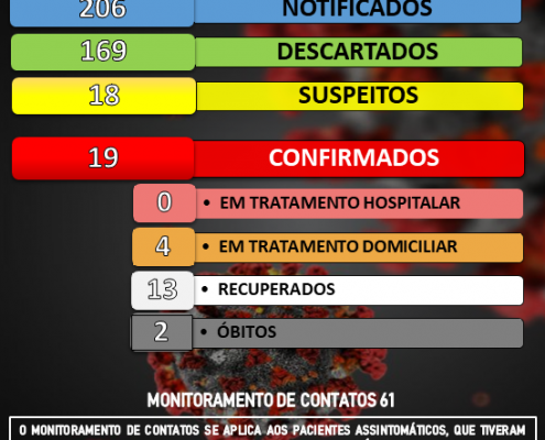 Boletim diário de acompanhamento de casos de Coronavírus em Bandeirantes desta quarta-feira, 10/06