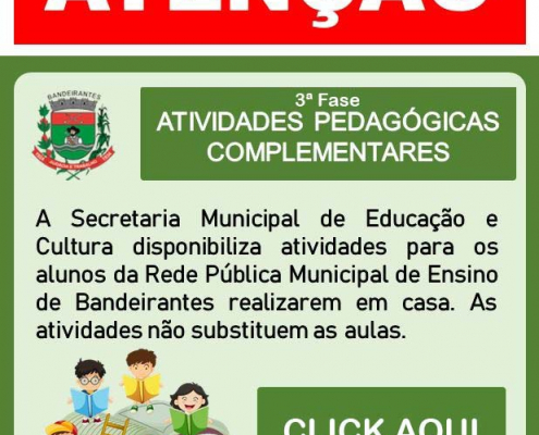 3ª fase de atividades pedagógicas complementares para alunos da rede pública de ensino de Bandeirantes