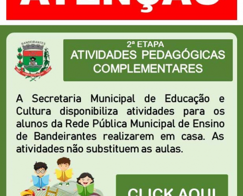 2ª fase de atividades pedagógicas complementares para alunos da rede pública de ensino de Bandeirantes