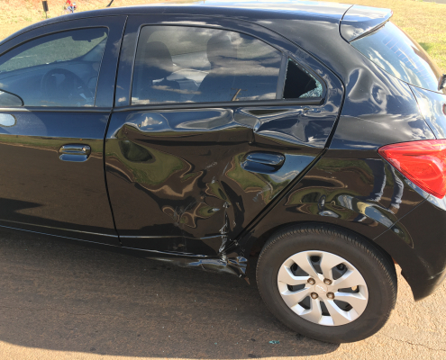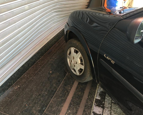 Carro bate em porta de loja no centro de Bandeirantes