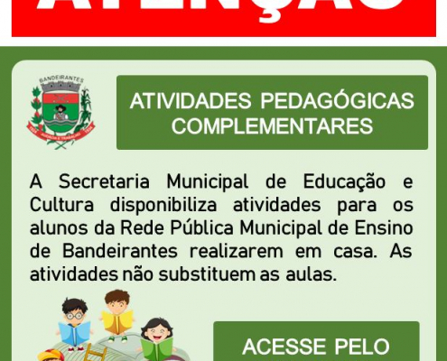 ATIVIDADES PEDAGÓGICAS COMPLEMENTARES para alunos da Rede Pública Municipal de Ensino de Bandeirantes