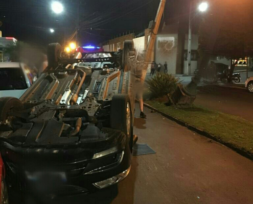 Colisão auto x auto seguida de tombamento no centro de Bandeirantes