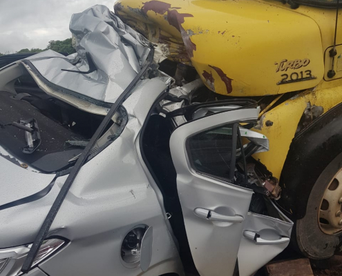 Um acidente grave envolvendo um carro e um caminhão terminou…