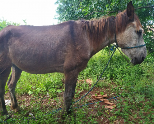 Mula solta pelas ruas de Bandeirantes é recolhida pelo projeto bicho e com o apoio da PM foi levada a um local seguro