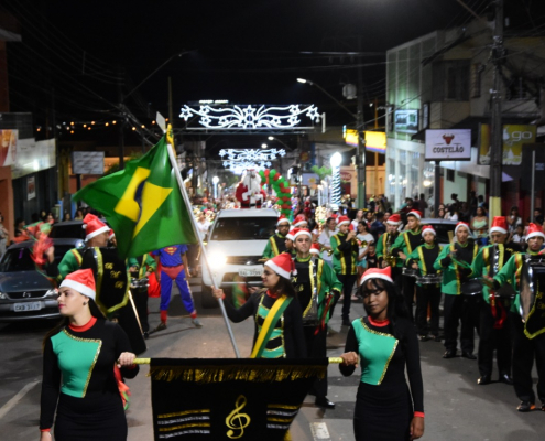 Desfile de Natal percorre as ruas centrais de Bandeirantes com a chegada do Papai Noel