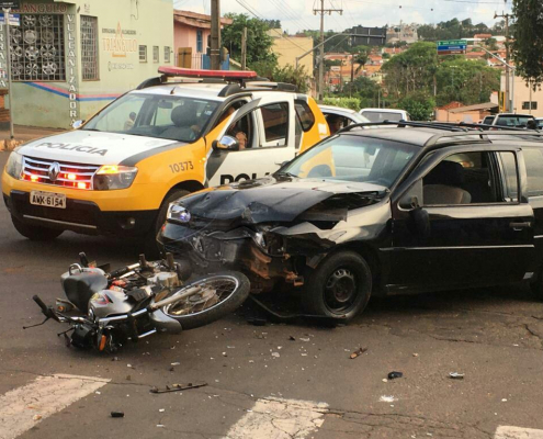 Colisão auto x moto no início da noite de sexta-feira (13), em Bandeirantes